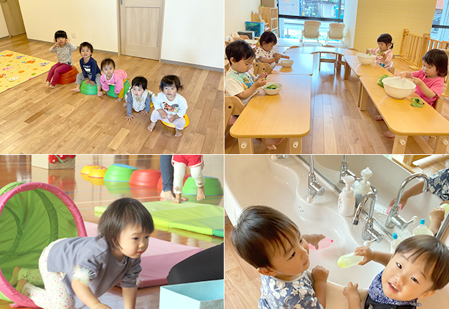 保育園は、子どもたちが長時間生活する場でもあるので、静と動のバランスや発達段階を踏まえ、